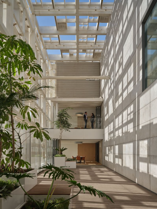 Sa conception bioclimatique, la finesse de ses façades nord et sud et le contrôle précis de la lumière traduisent une architecture durable et vertueuse.