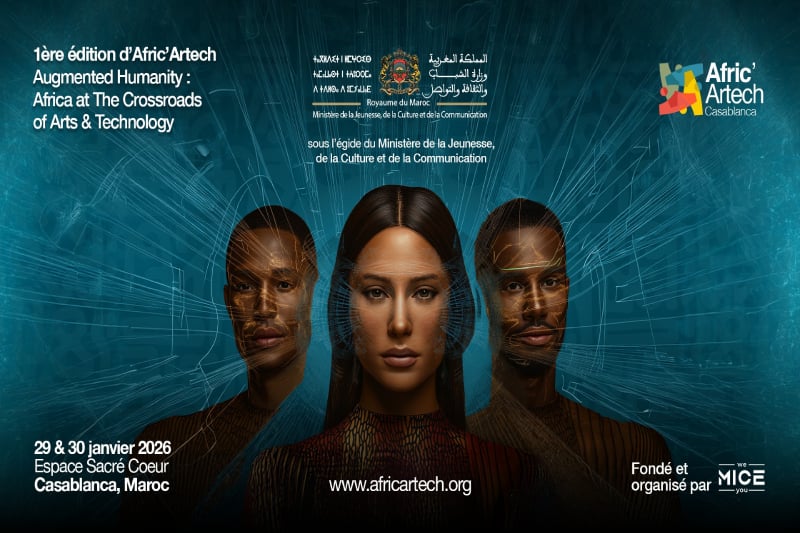 Afric’Artech est un événement d’exception dédié au croisement des arts, de la technologie et de l’innovation en Afrique. Il se tiendra les 29 et 30 janvier 2026 à l’Espace Sacré-Cœur de Casablanca, en présence de ministres, de hauts responsables institutionnels et de personnalités de premier plan, notamment issues des secteurs de la culture et de la transition numérique.