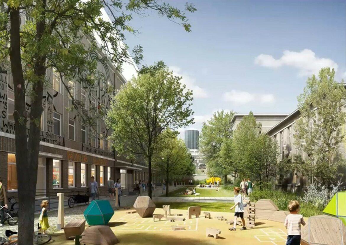 T.M : Comme pour l’espace public, les eaux de pluie sont gérées à la parcelle, sans rejet dans le réseau d’égout. Elles seront donc absorbées par les toitures végétales et les surfaces de pleine terre situées au sein même des îlots. Les cahiers des charges des concepteurs comportaient des prescriptions claires en ce sens. En cas de pluies exceptionnelles, le surplus d’eau impossible à retenir à la parcelle se déversera dans l’espace public. Le dimensionnement de ses rigoles, noues et zones inondables tient compte évidemment de cette exigence.